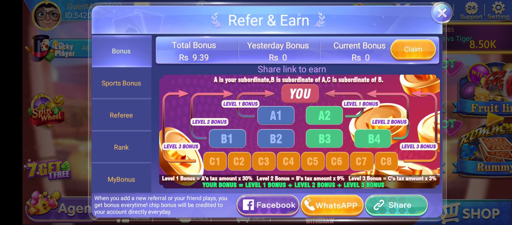 You can make passive income from the app by inviting others. Every time someone joins using your invite link or code, you earn a commission. Active players can earn up to 700 PKR per referral. Even if you’re not playing the games regularly, this system allows you to earn from your network.